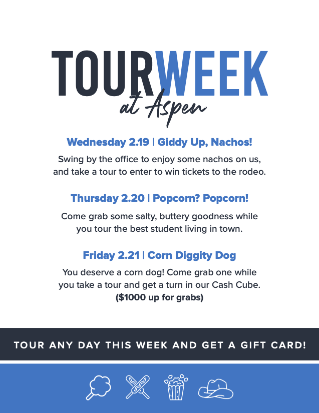 Aspen Heights Partners is a student housing company with properties across the nation. During my time at Aspen Heights, I created online banners and ads, digital and printed materials for event promotions, and contributed to campaign conceptualization.